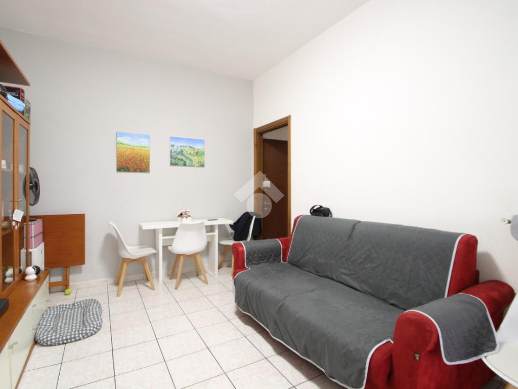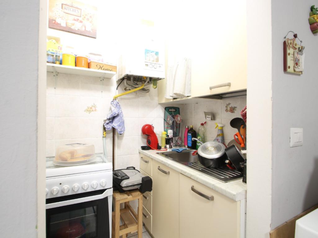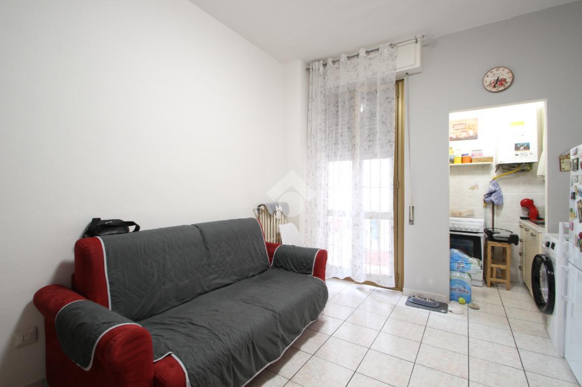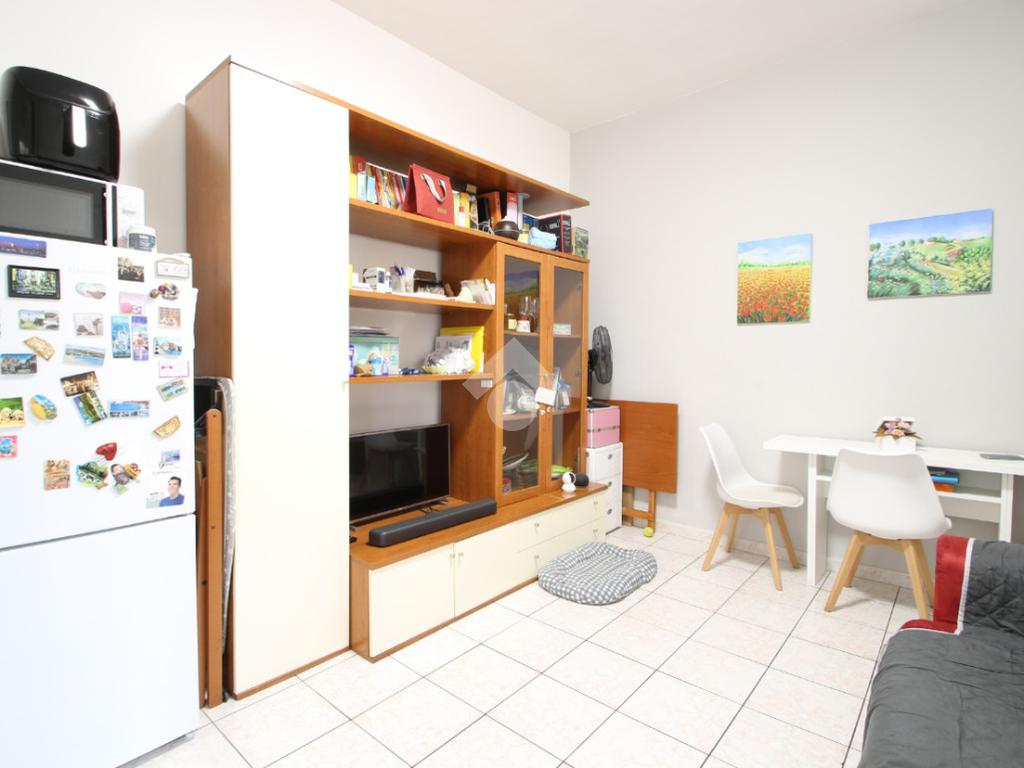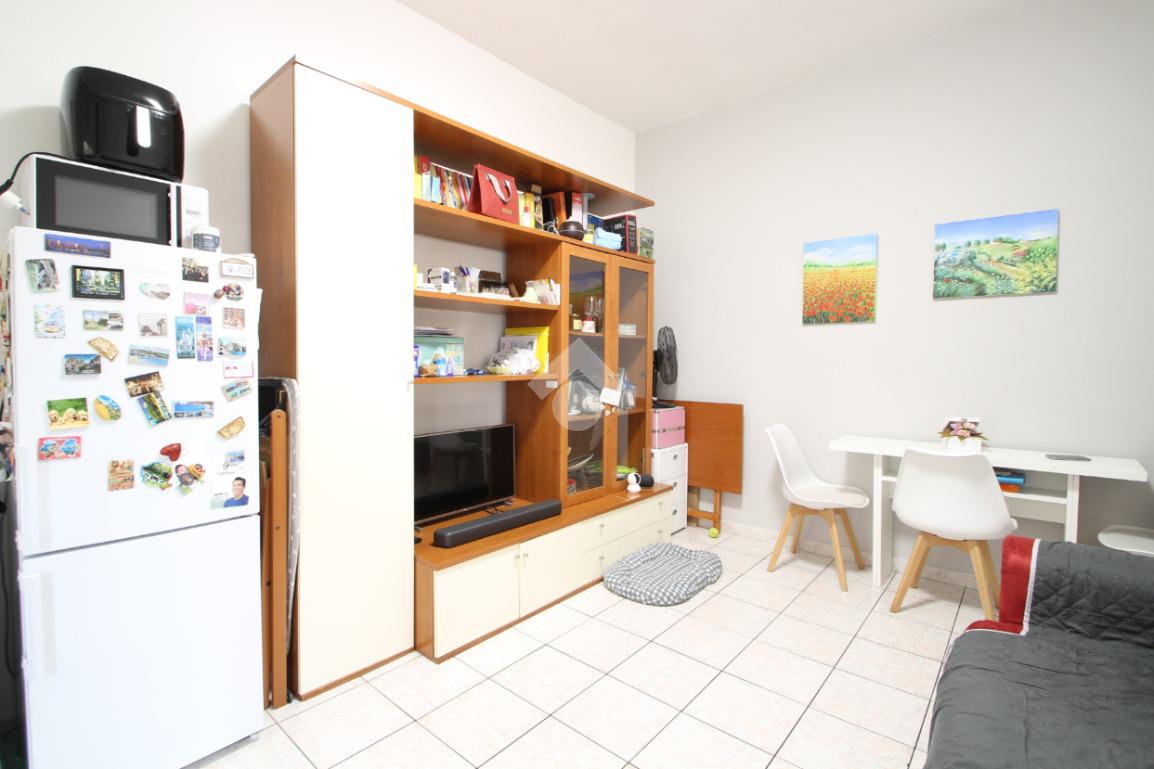 entrando si accede sulla destra alla zona di soggiorno/pranzo e cucina con sbarco su un balcone, a seguire sulla sinistra la spaziosa camera da letto matrimoniale ed infine il bagno finestrato.