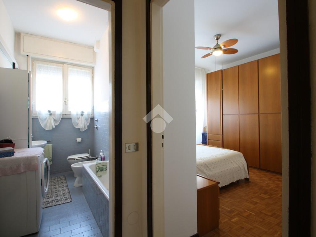 Dal soggiorno, attraverso una porta che separa in modo discrezionale gli ambienti, si accede alla zona notte. Una volta oltrepassata, si entra in un disimpegno funzionale, che distribuisce con ordine l'accesso: sulla sinistra troviamo un primo bagno finestrato dotato di vasca da bagno perfetta per momenti di relax e benessere.