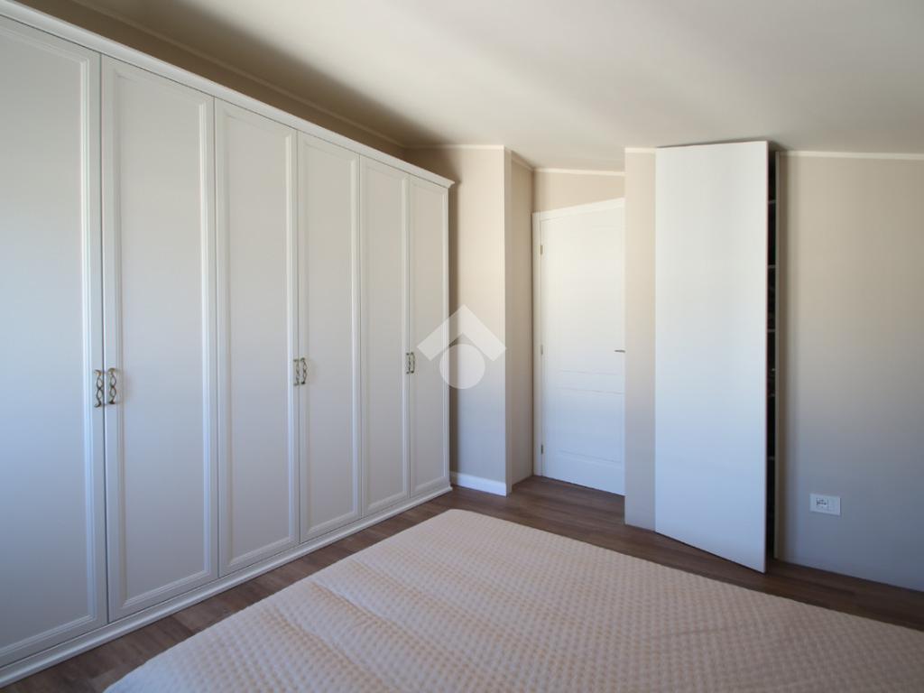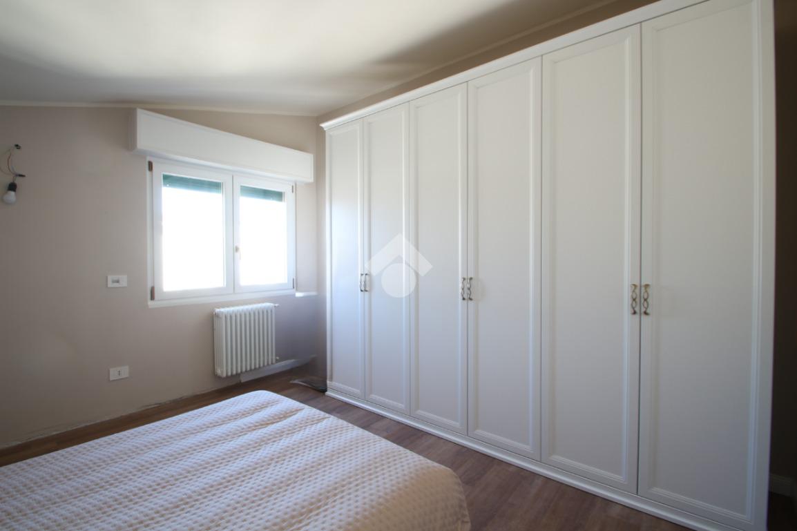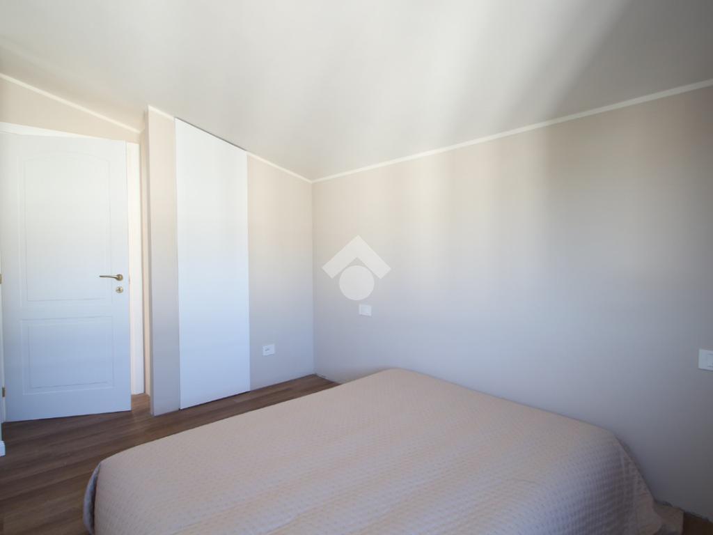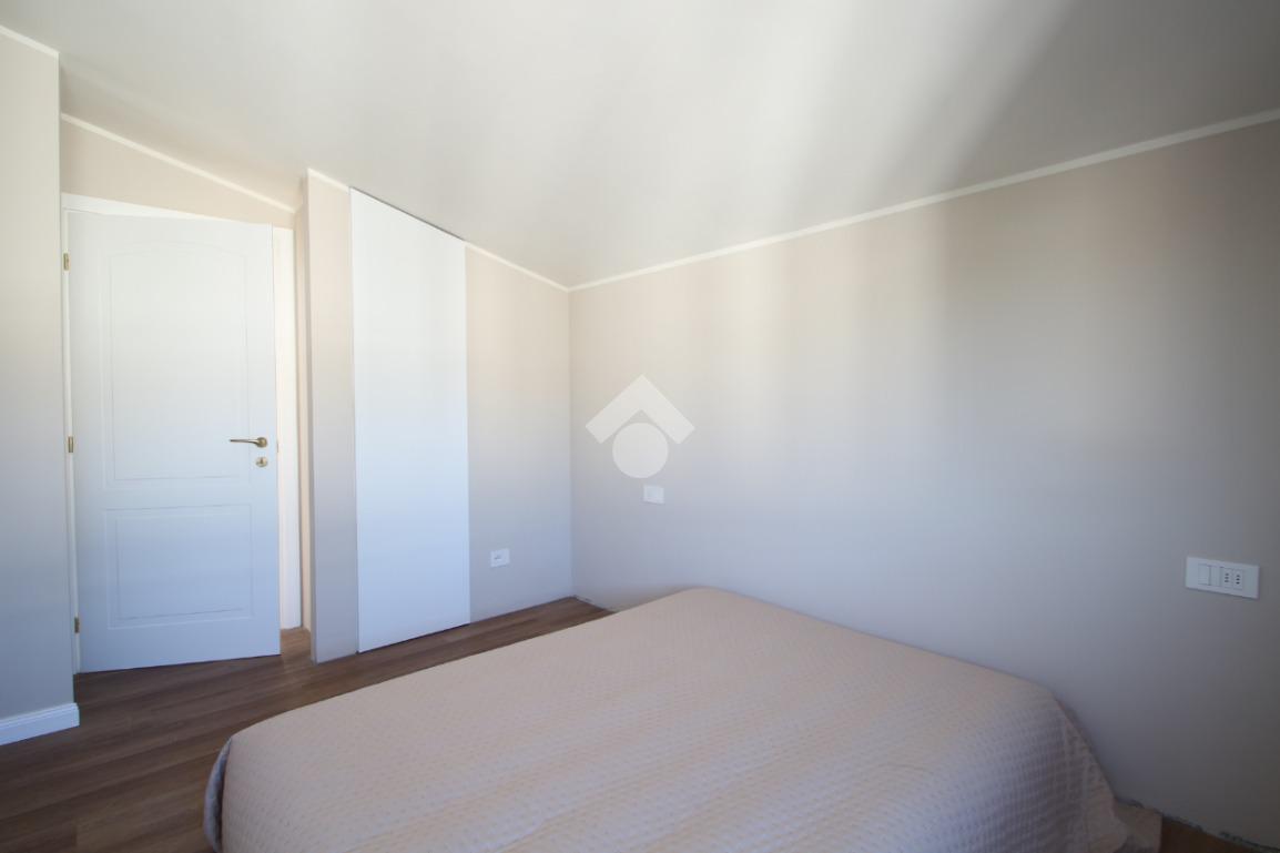Ritornando all'ingresso, la prima porta sulla sinistra conduce alla camera matrimoniale, funzionale e finestrata, dotata di una comoda nicchia-armadio che ottimizza lo spazio.