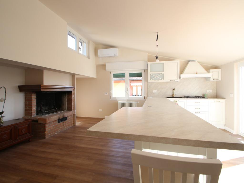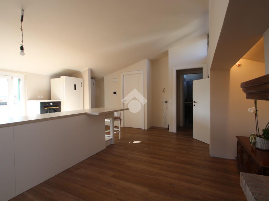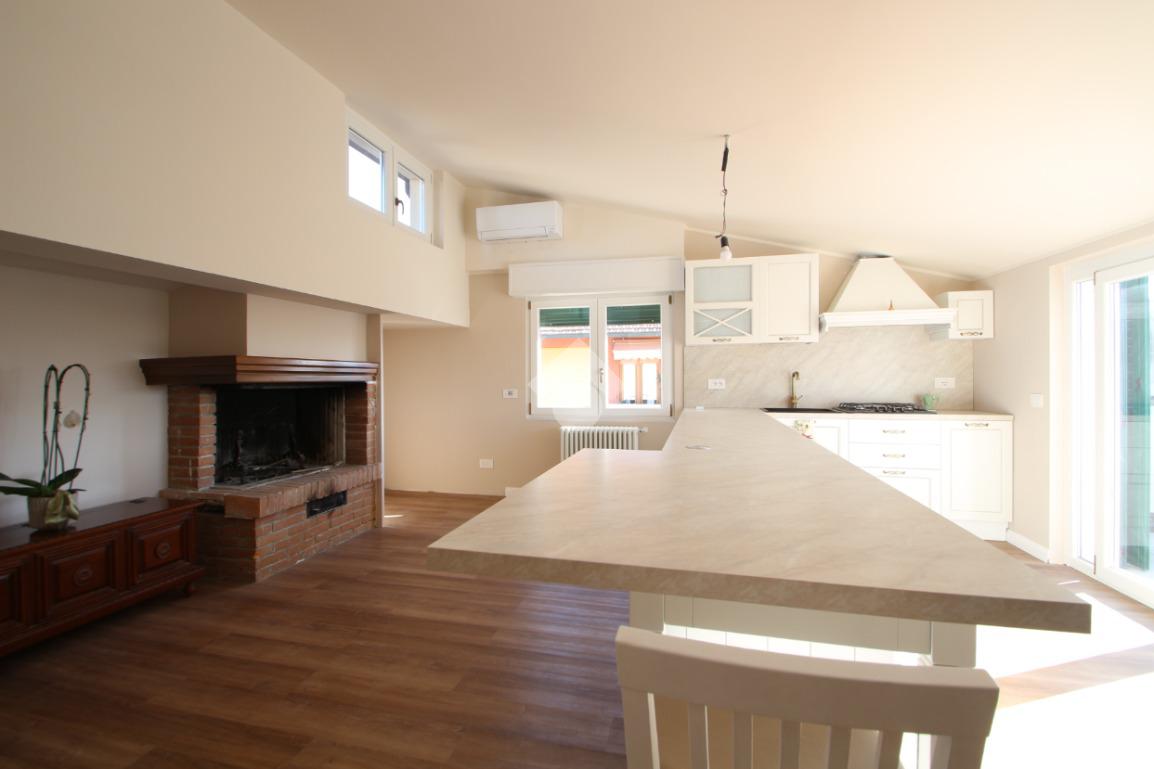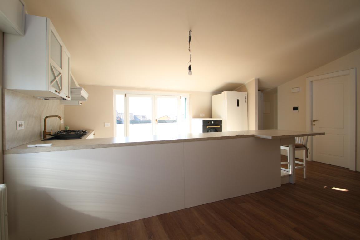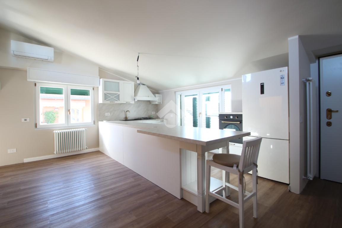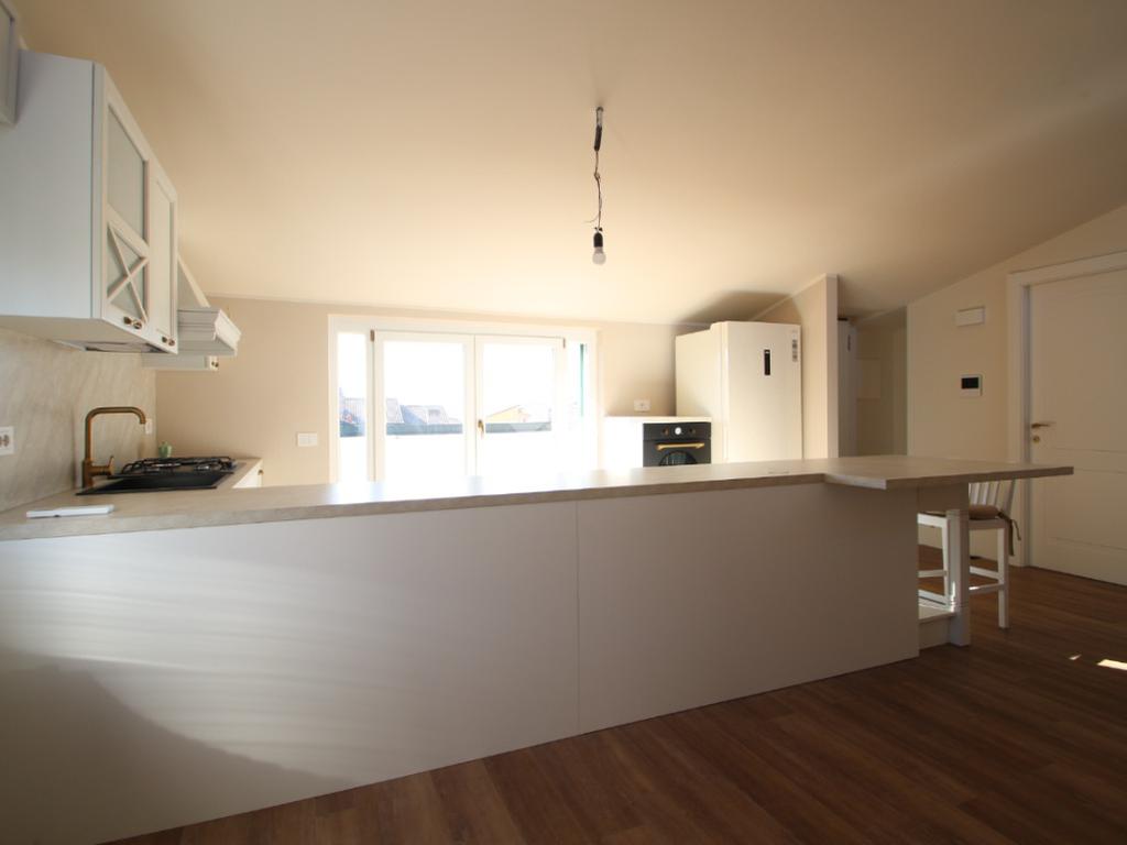 L'ingresso si apre su un accogliente e luminoso soggiorno con cucina a vista, arricchito da una porta finestra che affaccia su un terrazzino completamente esposto a Sud, perfetto per momenti di relax all'aperto.