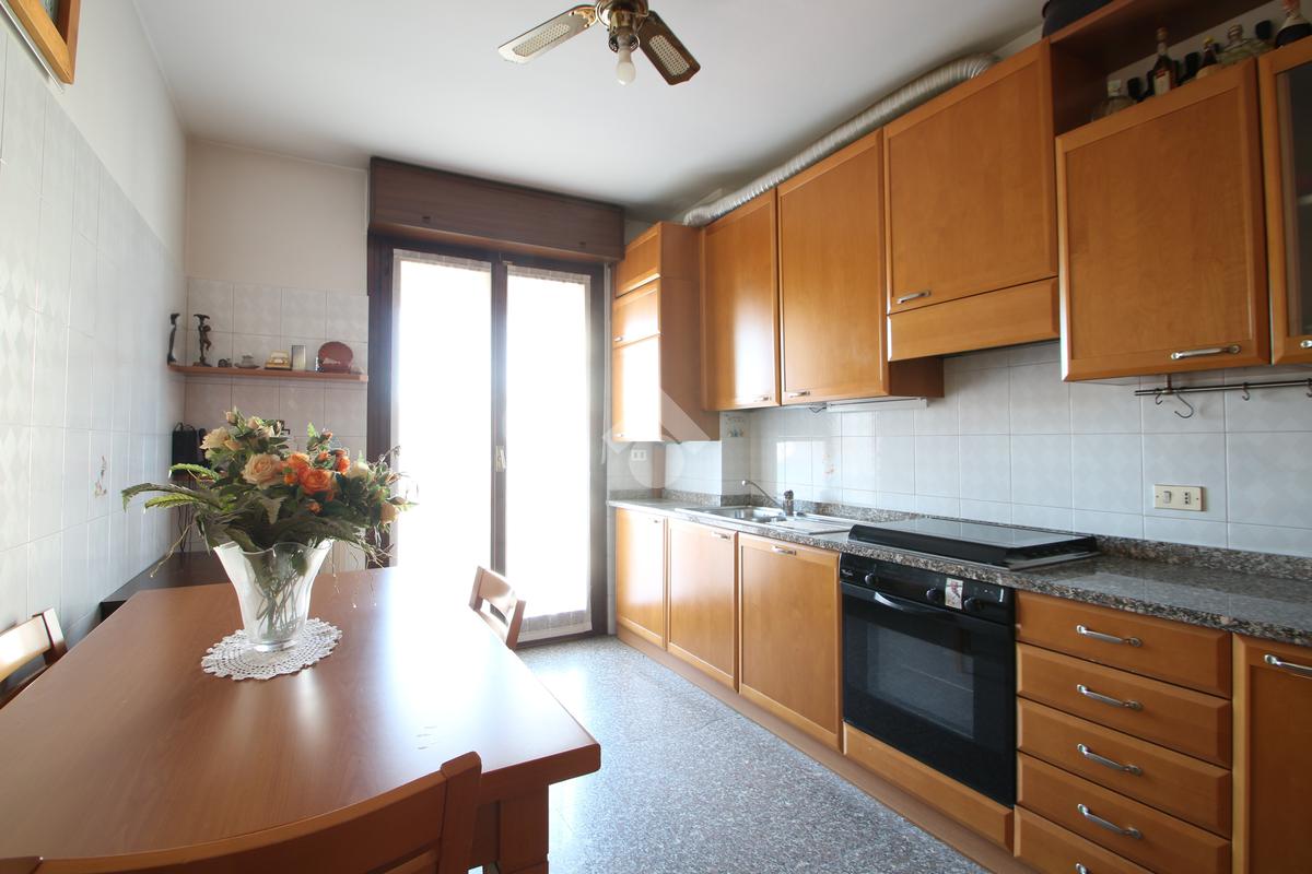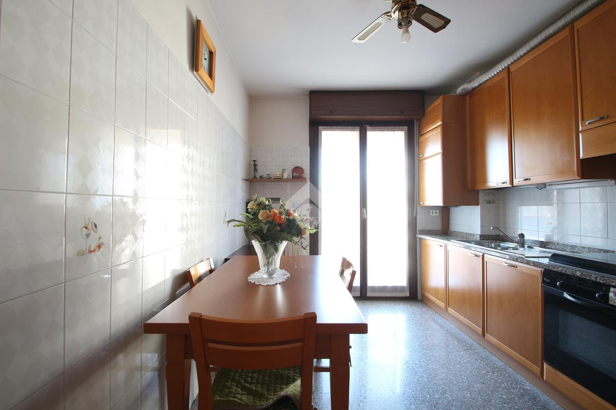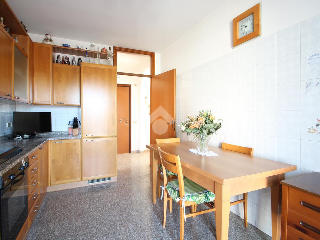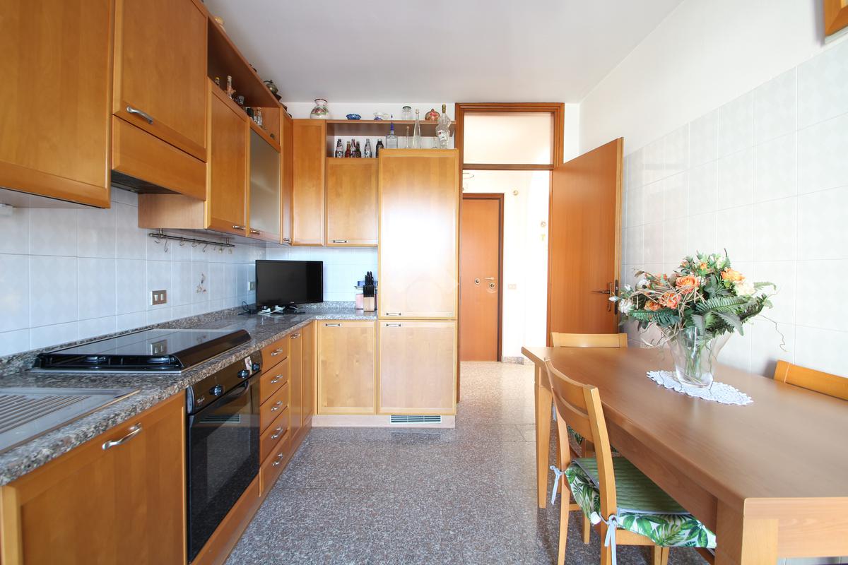 L'ingresso si apre su un pratico disimpegno che introduce agli spazi abitativi. Sulla destra si trova un comodo ripostiglio, pensato per rendere l'ambiente più ordinato e per organizzare al meglio ogni spazio della quotidianità. Proseguendo dritto, una porta conduce alla cucina abitabile, una zona ariosa e ben illuminata, grazie all'accesso diretto al balcone esposto ad Ovest, ideale per godersi momenti di relax e convivialità.