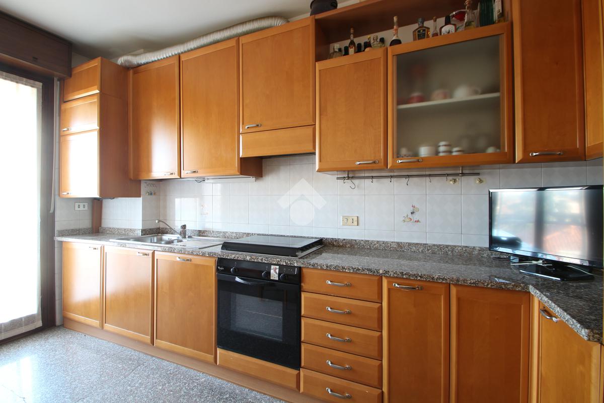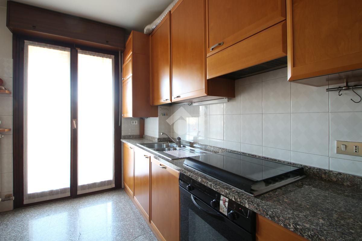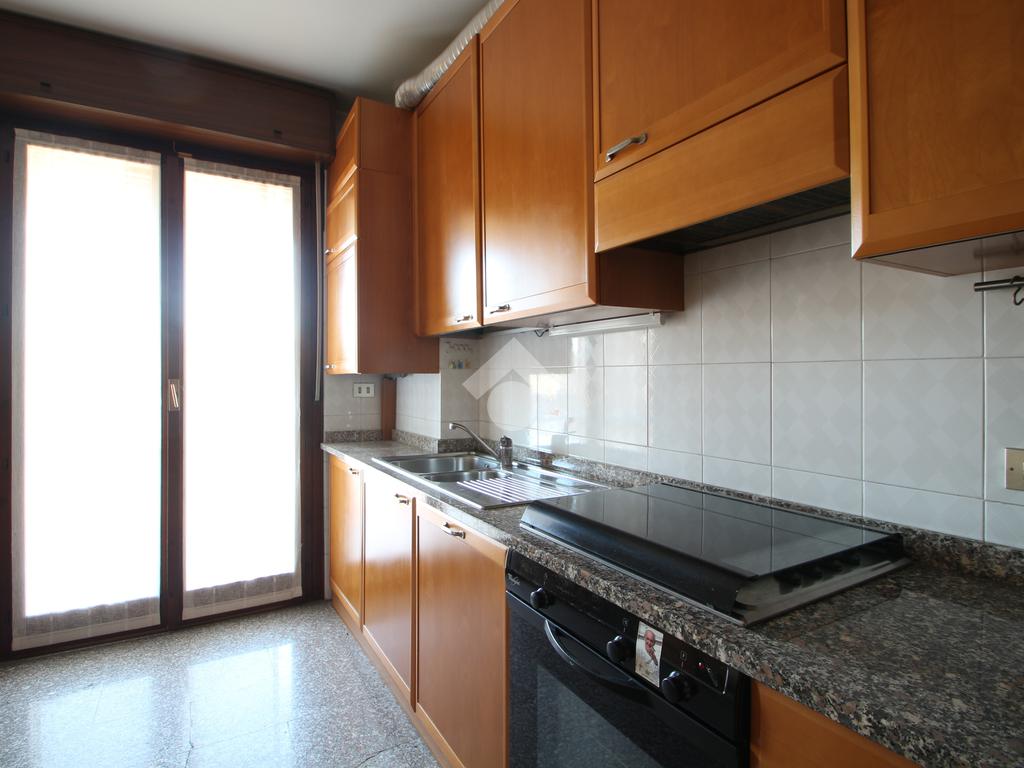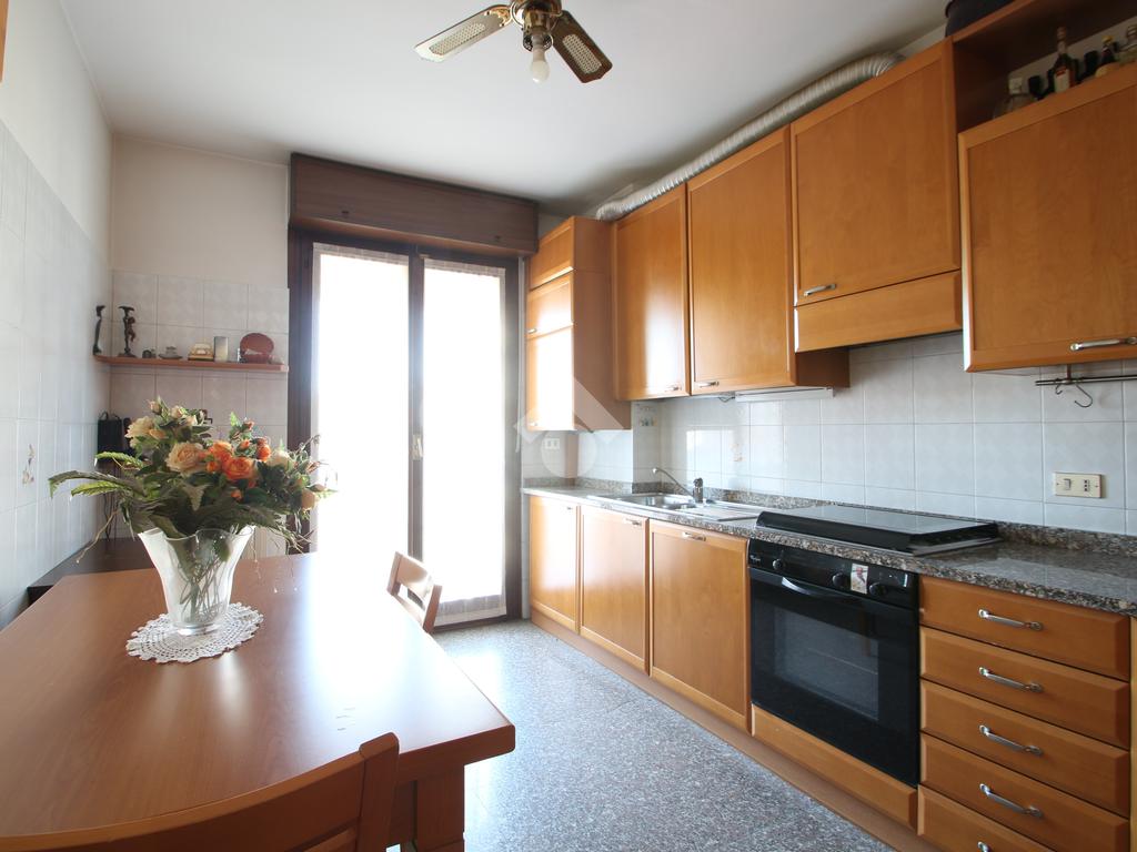 L'ingresso si apre su un pratico disimpegno che introduce agli spazi abitativi. Sulla destra si trova un comodo ripostiglio, pensato per rendere l'ambiente più ordinato e per organizzare al meglio ogni spazio della quotidianità. Proseguendo dritto, una porta conduce alla cucina abitabile, una zona ariosa e ben illuminata, grazie all'accesso diretto al balcone esposto ad Ovest, ideale per godersi momenti di relax e convivialità.