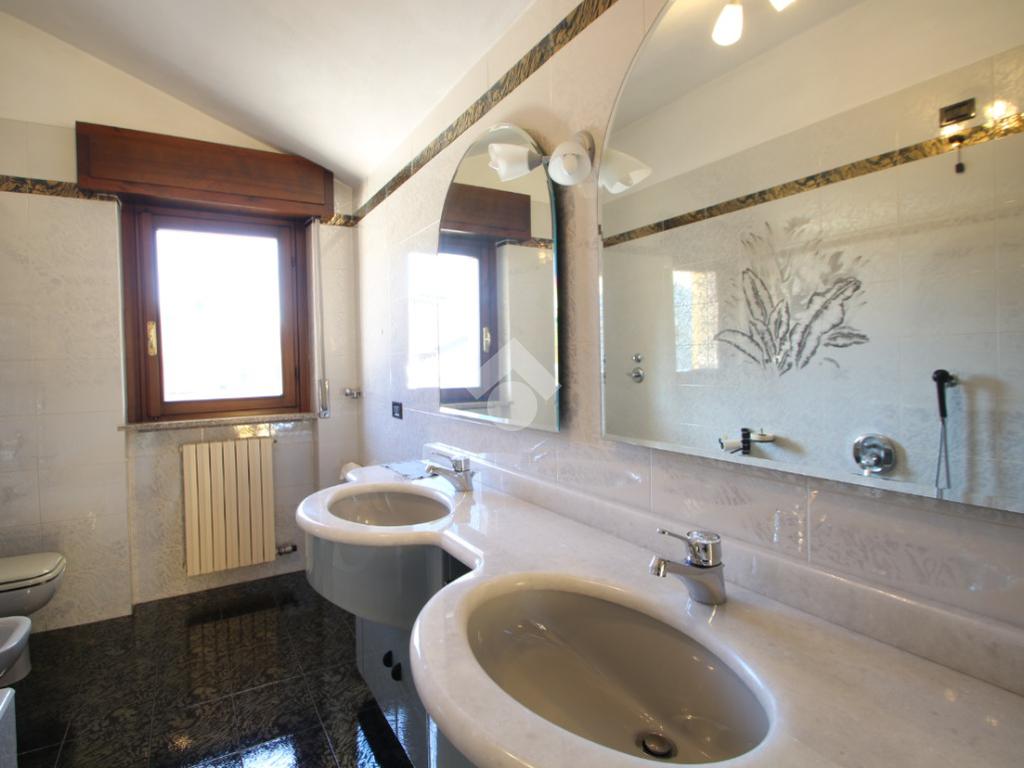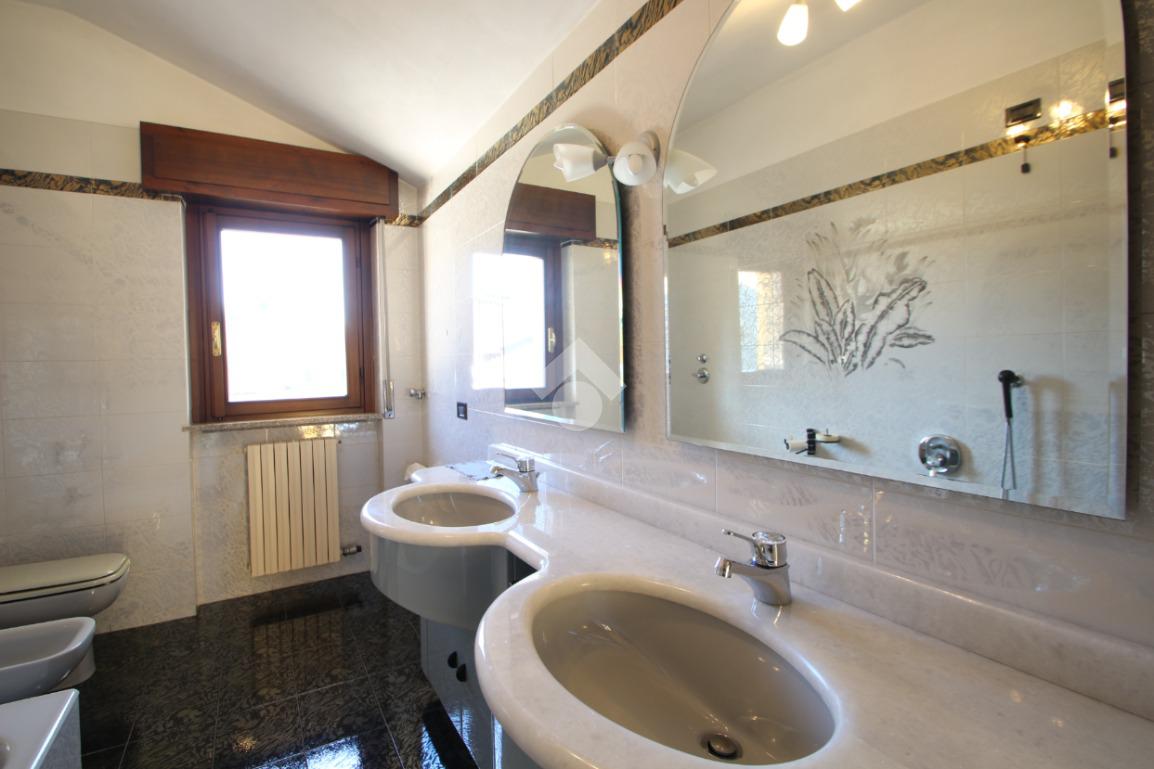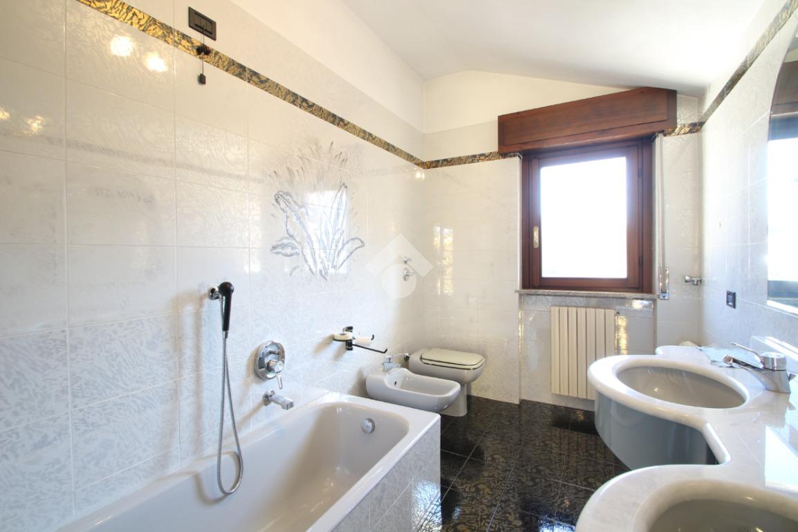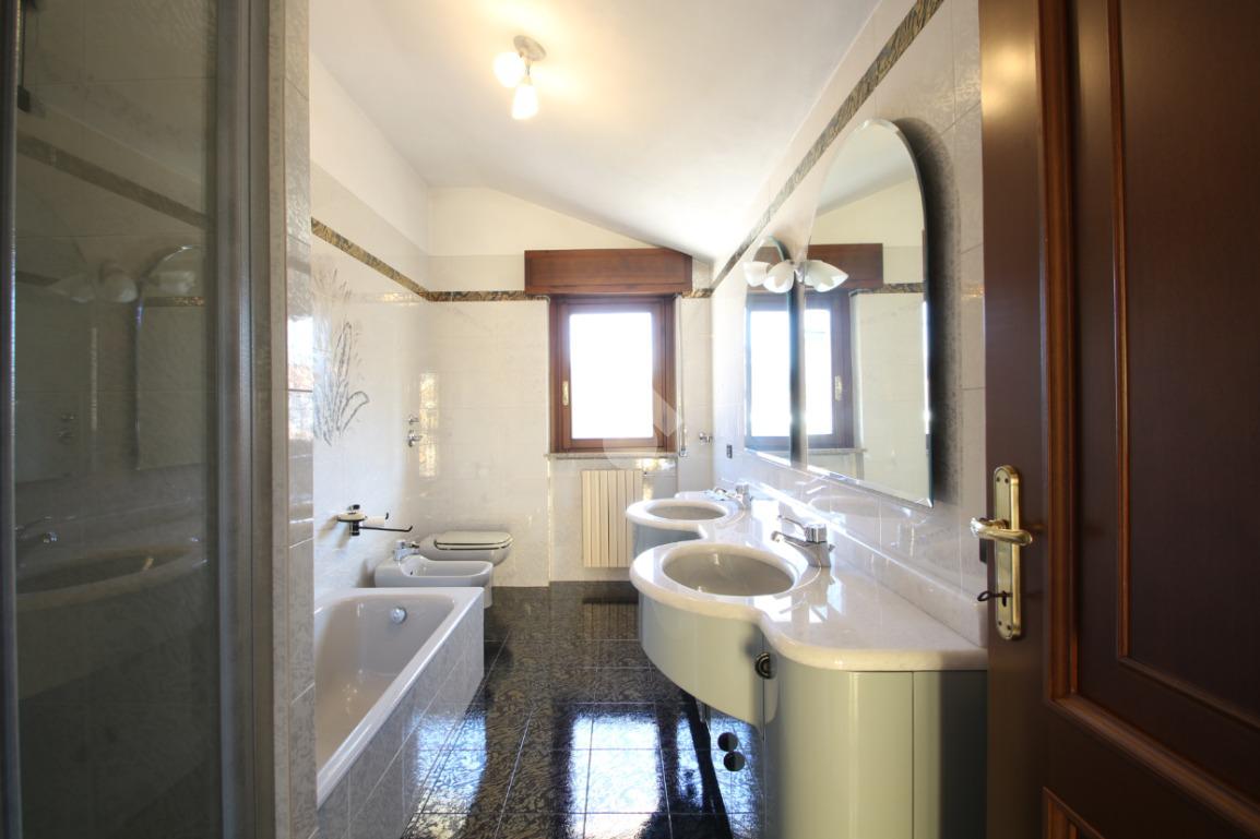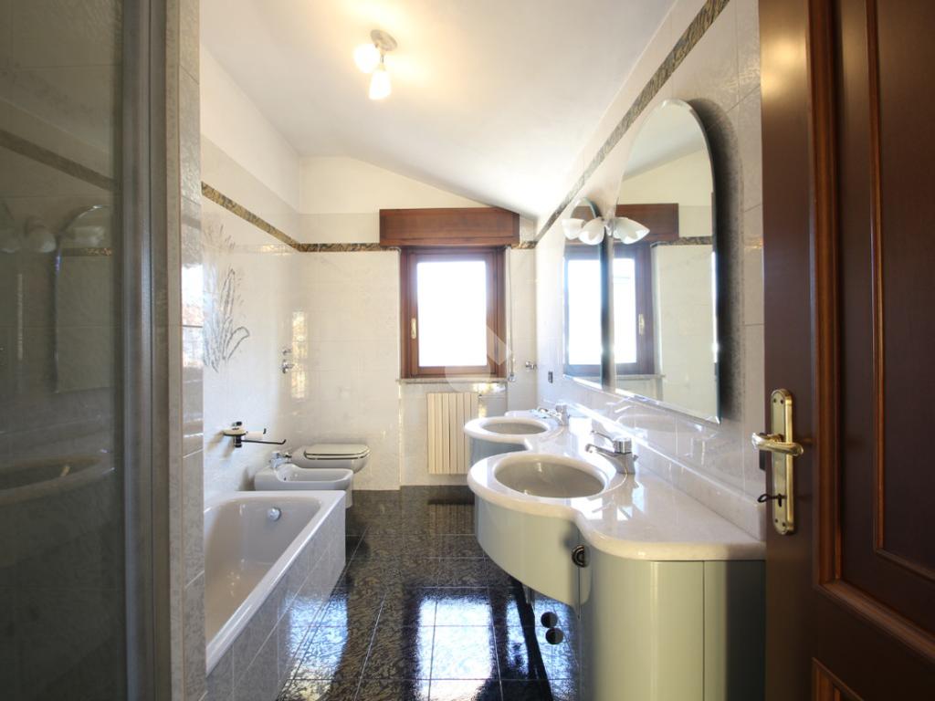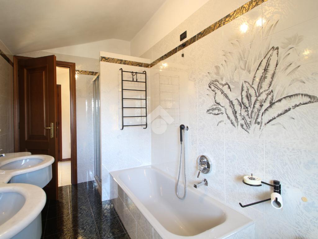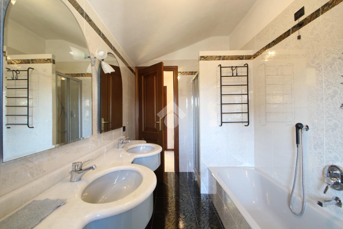 A seguire troviamo un ampio bagno finestrato e ben rifinito, completo di doccia, vasca da bagno e mobile con doppio lavabo. Accanto al bagno è presente un altro piccolo locale ideale come studio, ripostiglio o spazio di deposito.
