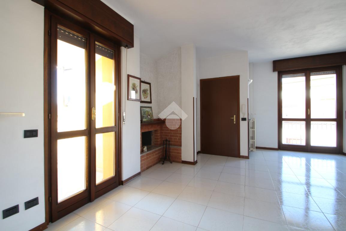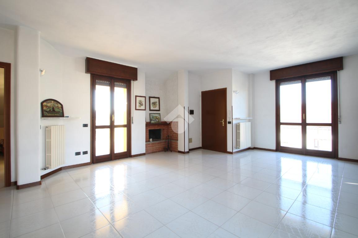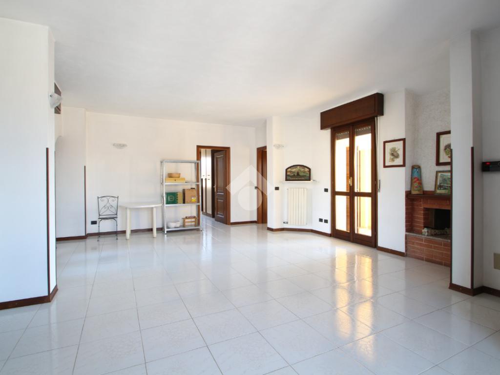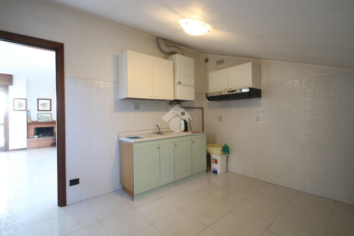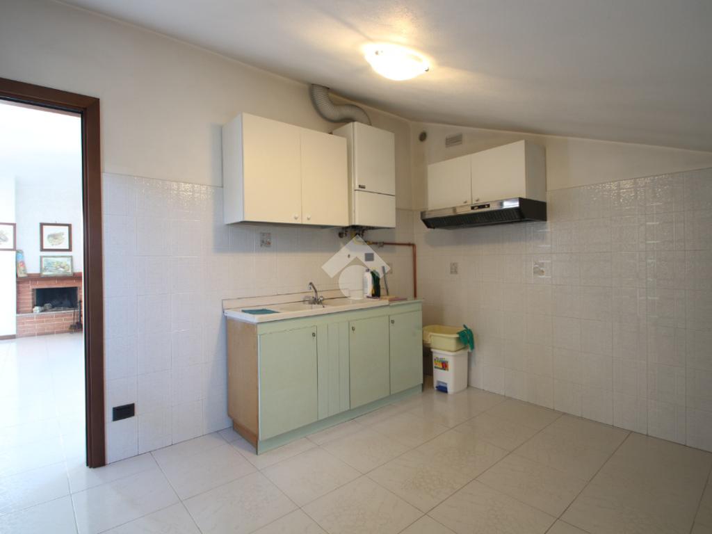Entrando nell'abitazione veniamo accolti da un ampio e luminoso soggiorno impreziosito da uno splendido camino; accanto a quest'ultimo, una porta finestra conduce ad un primo terrazzino coperto completamente esposto a Sud, ideale per momenti di relax. Sulla sinistra troviamo la cucina anch'essa con affaccio su un secondo terrazzino accessibile tramite una porta finestra.