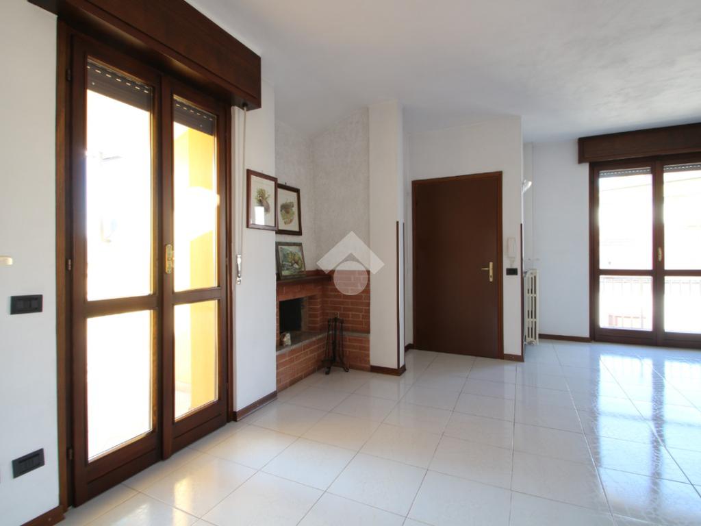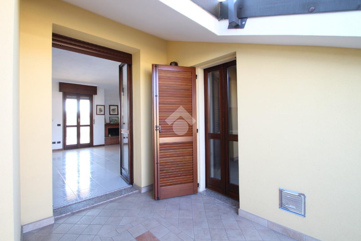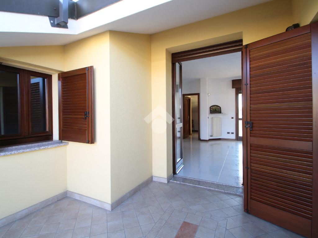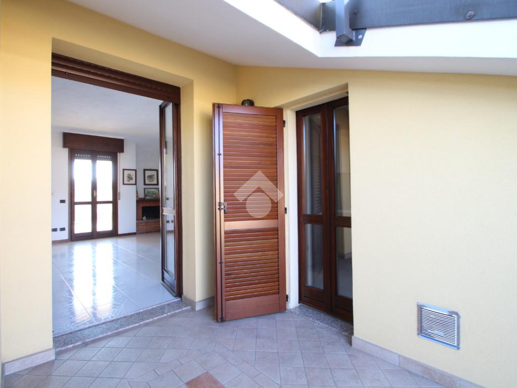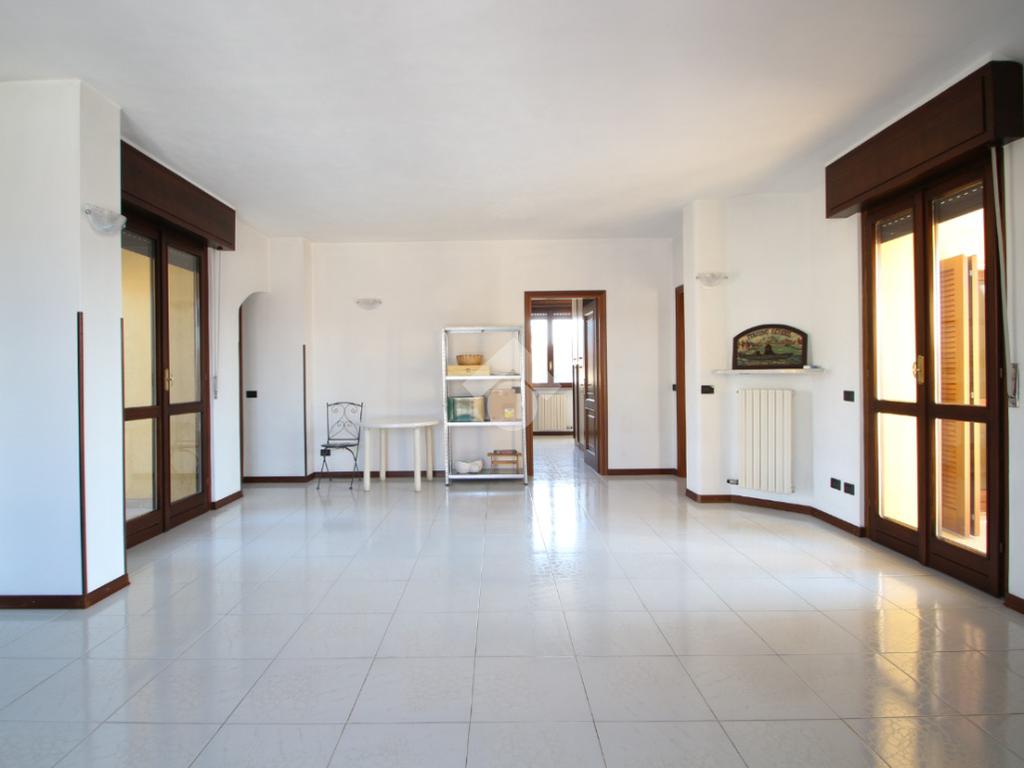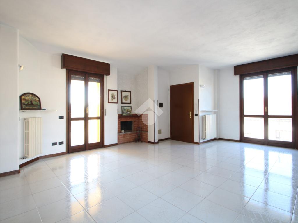 Entrando nell'abitazione veniamo accolti da un ampio e luminoso soggiorno impreziosito da uno splendido camino; accanto a quest'ultimo, una porta finestra conduce ad un primo terrazzino coperto completamente esposto a Sud, ideale per momenti di relax. Sulla sinistra troviamo la cucina anch'essa con affaccio su un secondo terrazzino accessibile tramite una porta finestra.