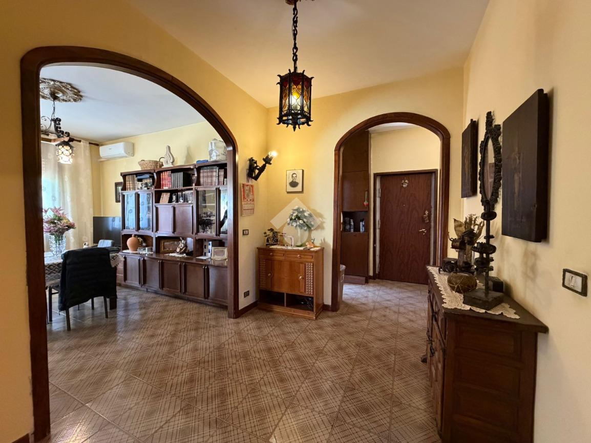 Proseguendo dritto rispetto all'ingresso si accede ad un altro ampio disimpegno che separa e distribuisce in modo ottimale tutti gli ambienti della casa. Da qui, sulla destra, un elegante arco conduce alla zona soggiorno e pranzo sviluppata a L, spaziosa e ben illuminata, con affaccio su un secondo ampio balcone, perfetta per momenti di relax.